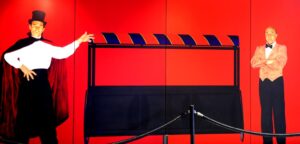 Emptiness: The Magic Trick, magician & assistant, top hat and cape, painted panels, magic box, red, black, blue, white, painting, Seatac Airport, Seattle, Washington, USA by Hogfish Admin | 0 commentsSubmit a Comment Cancel replyYour email address will not be published. Required fields are marked *Comment *Name * Email * Website